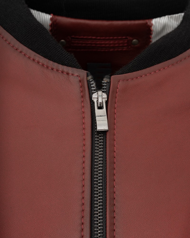 • Przedstawiona na zdjęciu kurtka skórzana jest w kolorze bordowym