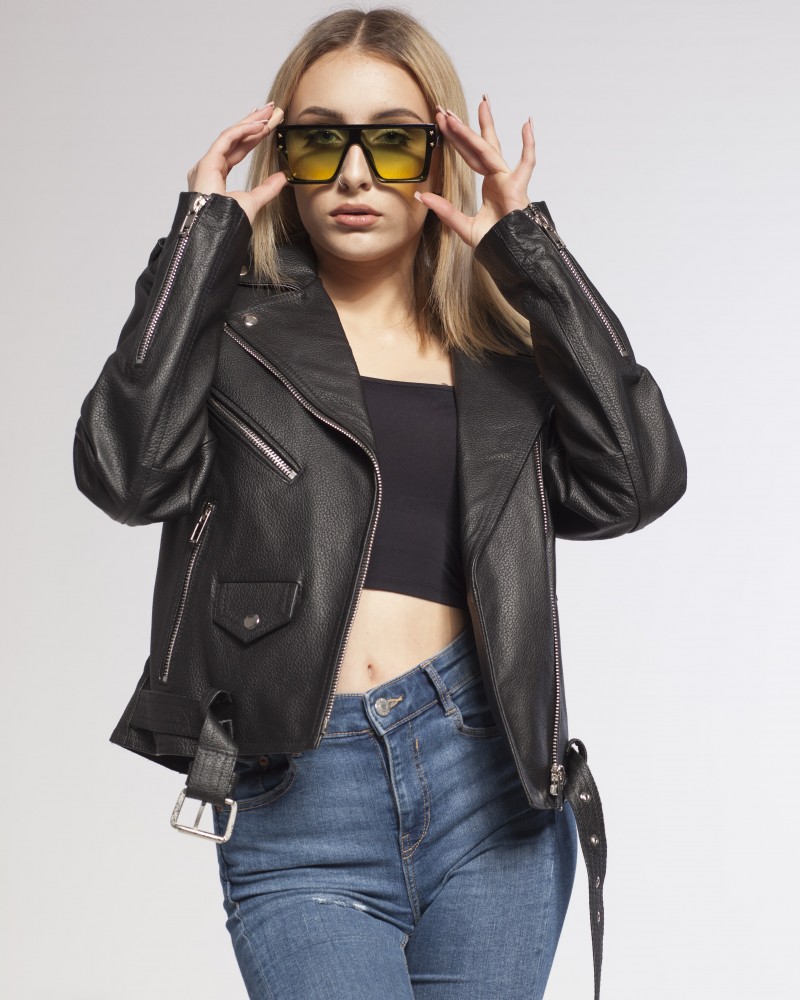 Damska ramoneska skórzana Aleksa z naturalnej, grubej skóry