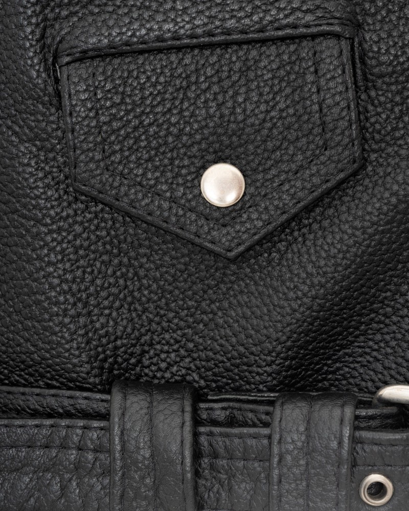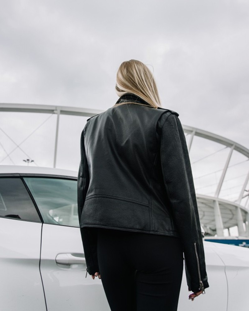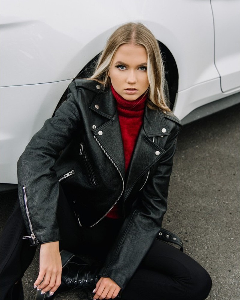 Damska ramoneska skórzana Aleksa to w 100% Polski projekt, uszyty z naturalnej skóry bydlęcej typu Nevada, która nadała jej zarówno wyjątkowej wytrzymałości i odporności na urazy mechaniczne, jak i niezwykłego połysku. Prosty fason długości do pasa idealnie sprawdza się w wielu stylizacjach, delikatnie podkreślając krągłości kobiecej sylwetki. Kurtka zapinana jest na wszyty nieco asymetrycznie zamek, który nie tylko ułatwia codzienne użytkowanie modelu, ale także wpływa dodatnio na jego wygląd. U dołu znajduje się pasek z elegancką klamrą, który służy do swobodnej regulacji obwodu i sprawdzi się zwłaszcza wtedy, gdy pragniesz założyć pod spód grubszą warstwę ubrań.