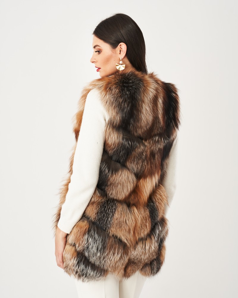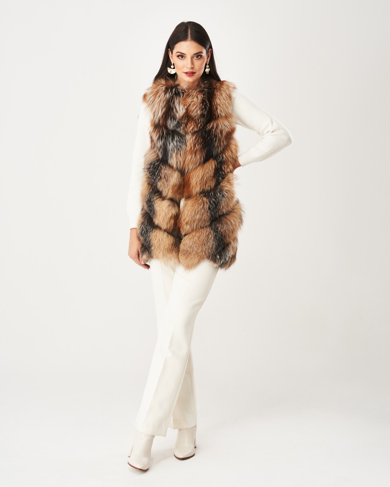 Damska kamizelka futrzana z lisa Hawana jest miękka i puszysta, odznacza się naturalnym, trójkolorowym odcieniem i długim włosem, dlatego zapewni efektowny i stylowy wygląd, ochroni przed chłodem podczas najzimniejszych dni w roku oraz pozwoli wykreować wiele ciekawych i eleganckich stylizacji.