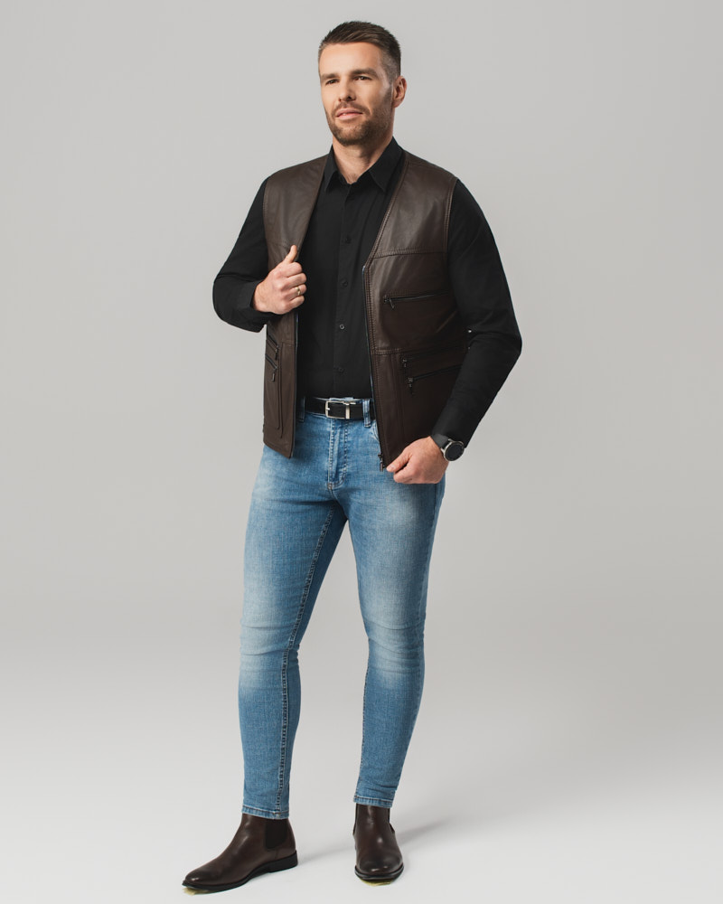Kamizelka skórzana męska Oskar to wybór dla pewnych siebie mężczyzn