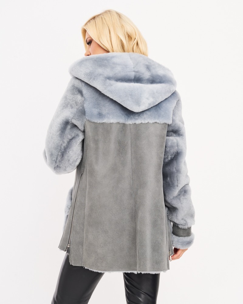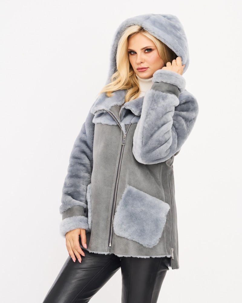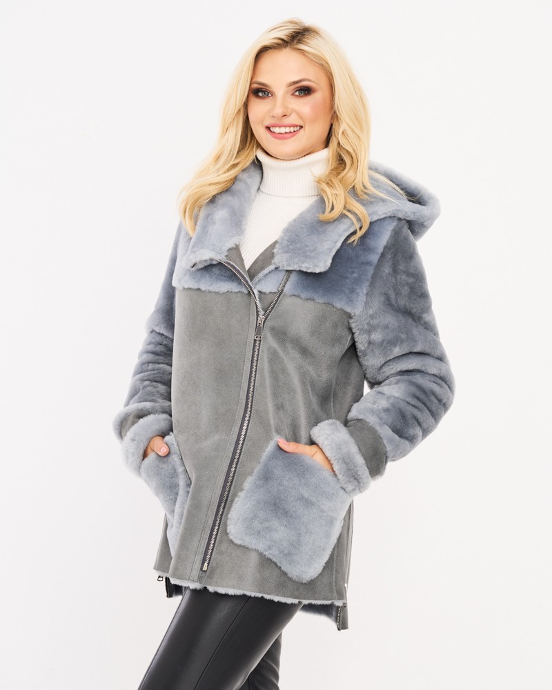Naturalny damski kożuch Alexis siwy zapinany jest na wszyty po skosie zamek z odpornej i wytrzymałej stali nierdzewnej. Podobny zamek znajduje się po bokach, umożliwiając swobodną regulację obwodu. Takie rozwiązanie okaże się przydatne zwłaszcza wtedy, gdy chcesz założyć pod spód grubszą warstwę ubrań. Ciepły kaptur, który narzucić możesz na głowę oraz dwie praktyczne kieszenie boczne to ponadczasowe akcenty, wpływające dodatnio na praktyczność modelu, a także zwiększające jego funkcję termoizolacyjną.