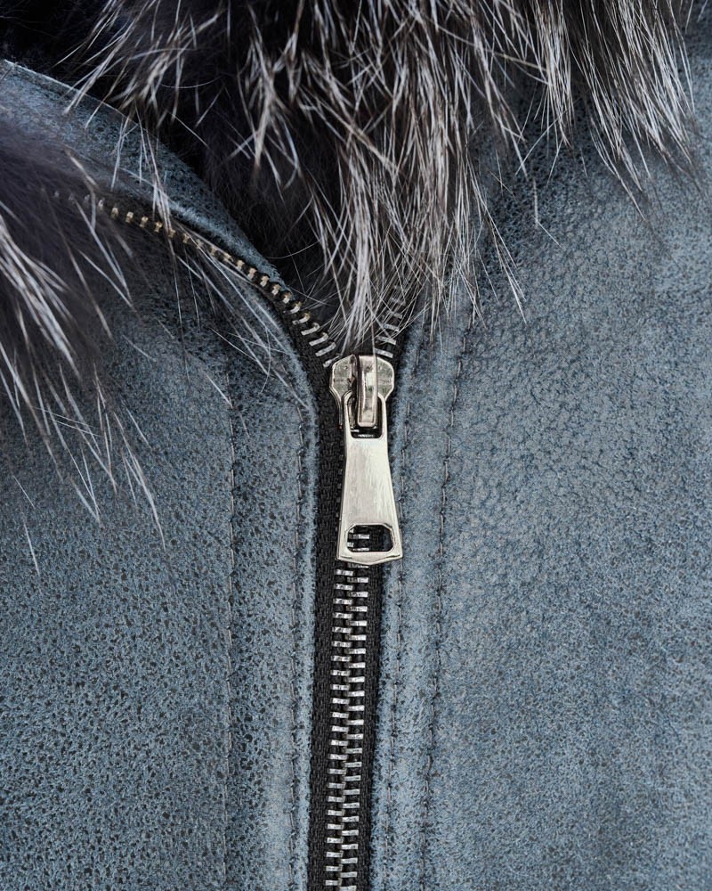Kożuch damski Domi sięga do bioder, gwarantując doskonały wygląd dzięki lekko taliowanemu fasonowi oraz modnym przeszyciom, które optycznie wysmuklają sylwetkę, zapewniając Ci doskonałe samopoczucie w każdej sytuacji. Skośnie wszyty zamek pracuje płynnie i sprawnie, idealnie chroniąc ciało przed wiatrem i deszczem. Ciepły, obszerny kaptur obszyty został naturalnym lisem, co zapewnia nie tylko doskonały wygląd, ale także jeszcze większą izolację przed chłodem. Przyjemne w dotyku, miękkie futerko zachęca do wtulenia się w nie, gdy pogoda zrobi się naprawdę niesprzyjająca.