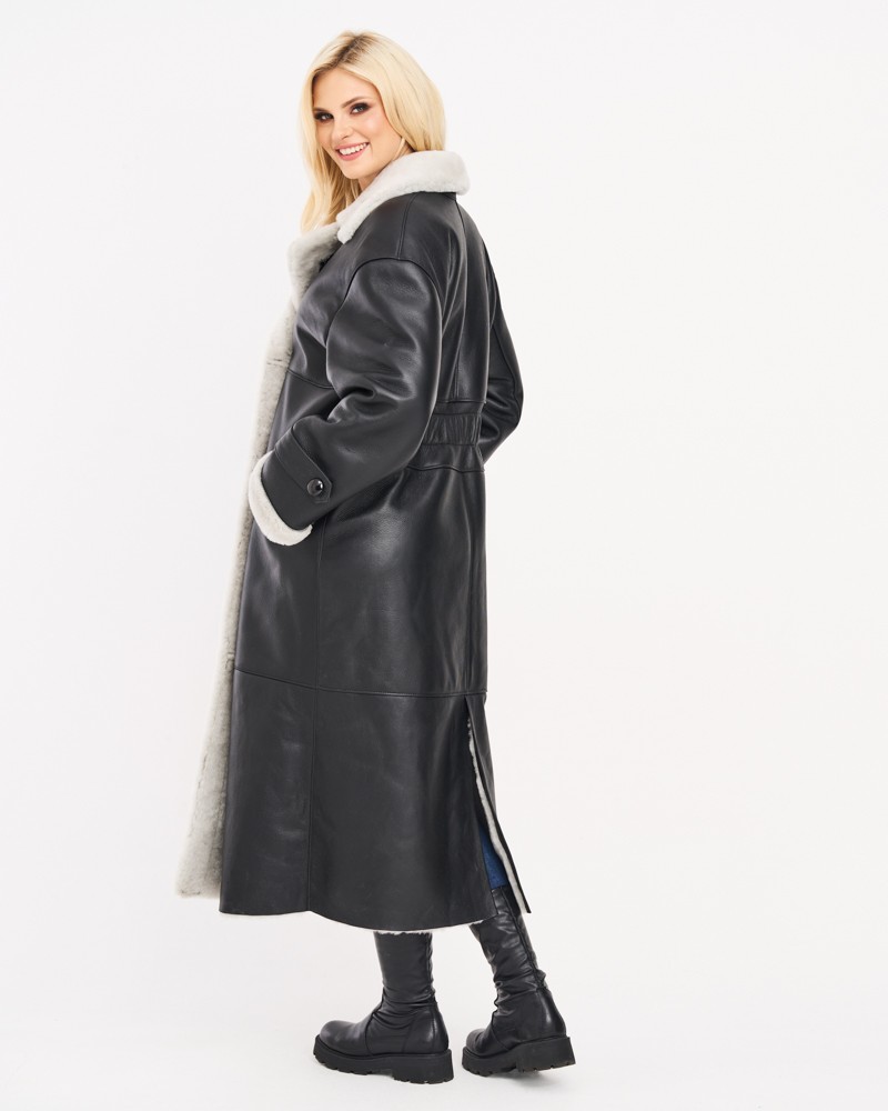 Naturalny kożuch damski Everly skrojony został w wygodnym, zapewniającym swobodę ruchów i niepowtarzalny komfort noszenia fasonie typu oversize. Długość maxi optycznie wysmukla sylwetkę i delikatnie tuszuje jej ewentualne mankamenty, dbając przy okazji o komfort cieplny całego ciała. Model uszyto z wysokogatunkowej, skutecznie chroniącej przed chłodem skóry owczej, dlatego niestraszne Ci w nim będą mróz oraz niepogoda.