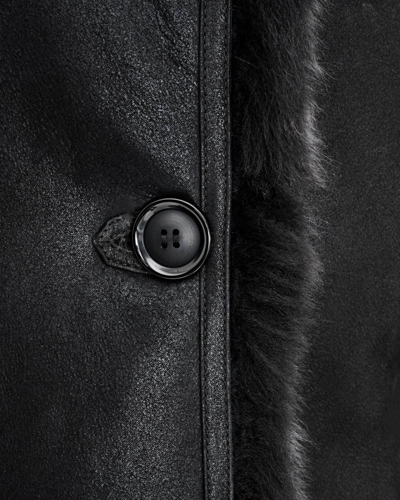 Kożuch damski Gabriella posiada prosty krój sięgający do kolana, który idealnie układa się na figurze, zapewniając ciepło zarówno górnym, jak i dolnym partiom ciała. Delikatne przeszycia subtelnie modelują figurę sprawiając, że każda kobieta wygląda w tym kożuchu pięknie oraz elegancko. Zapięcie na solidnie przyszyte guziki jest praktyczne i wygodne. Kieszenie boczne, w które schować możesz dłonie lub najpotrzebniejsze drobiazgi, zapinane są z kolei na wytrzymały zamek ze stali nierdzewnej, dzięki czemu nigdy niczego nie zgubisz.