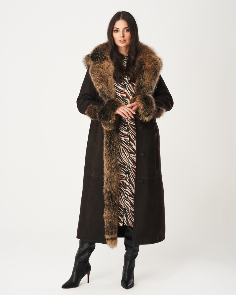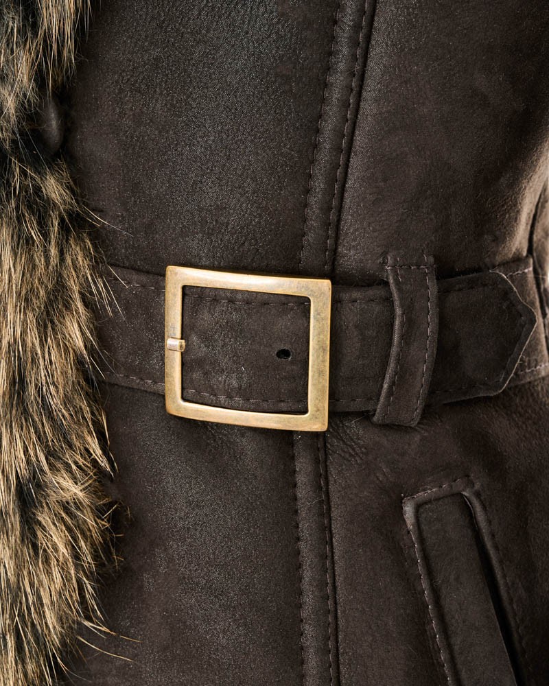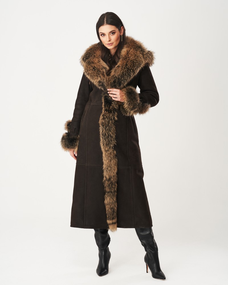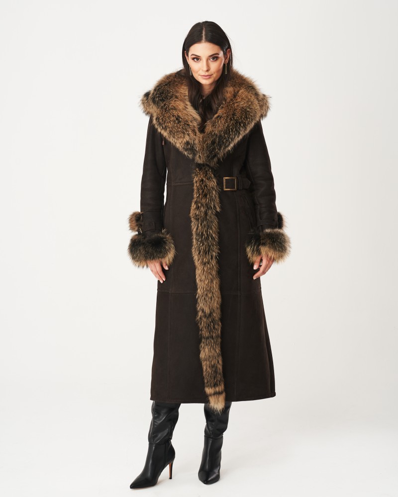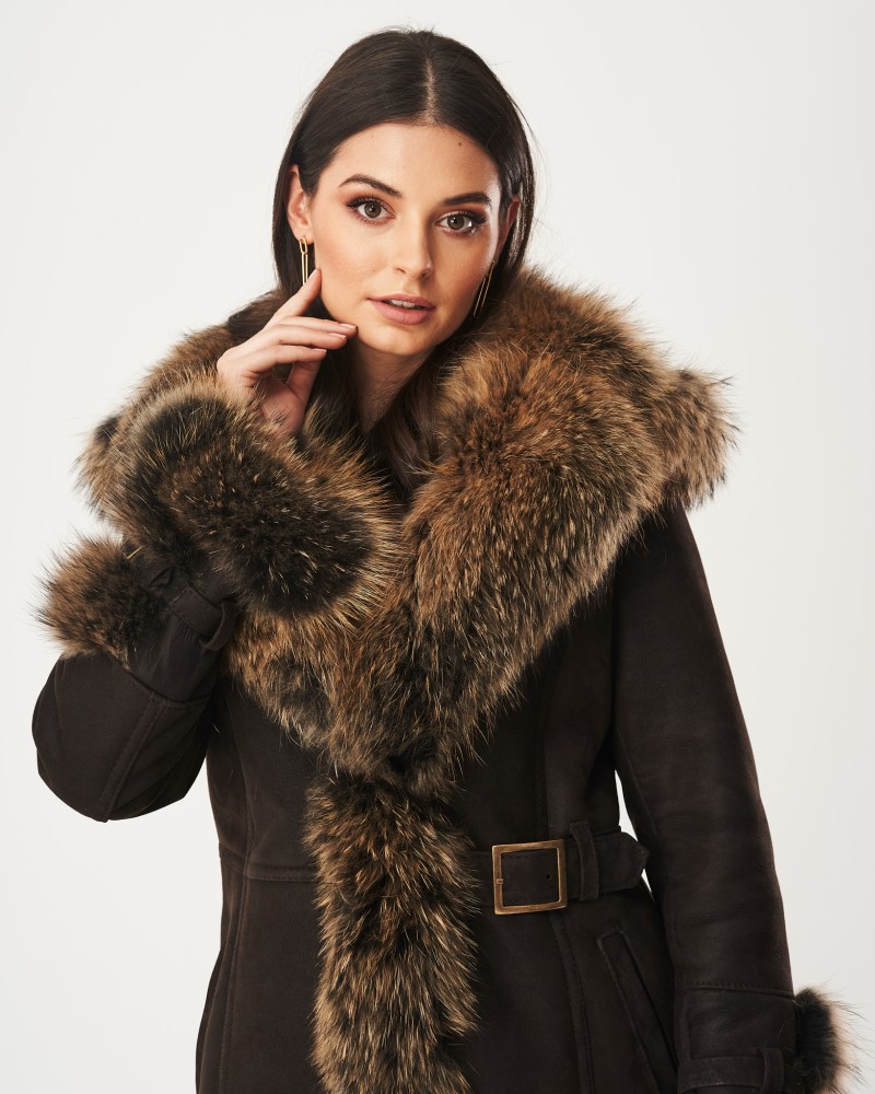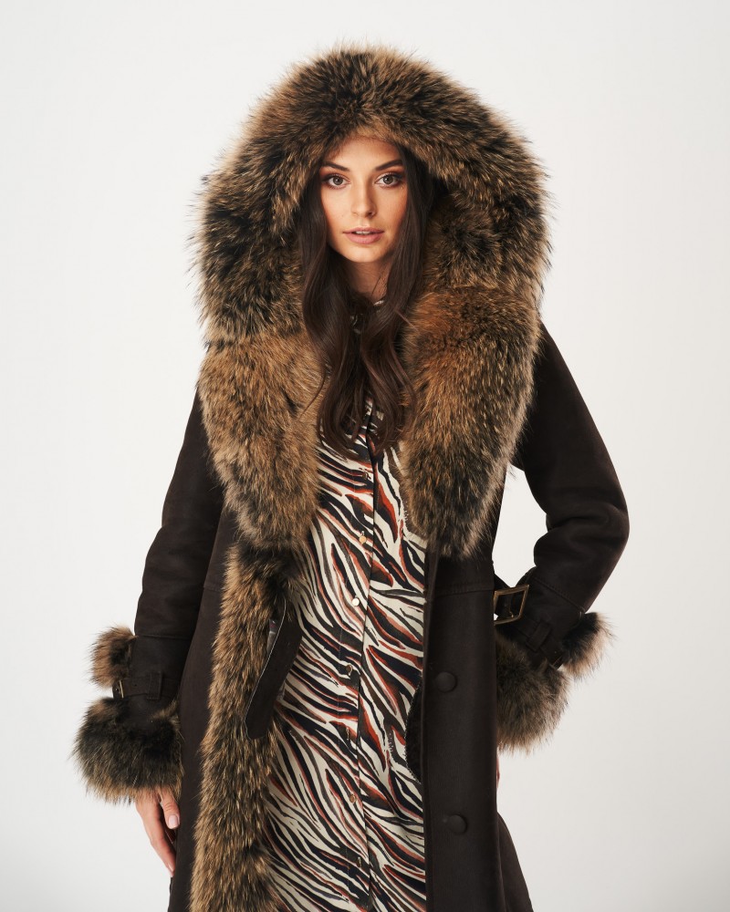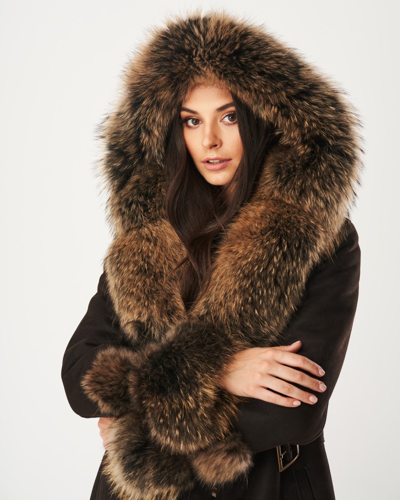 Kożuch damski Karen dostępny w wersji z futrzanym kapturem