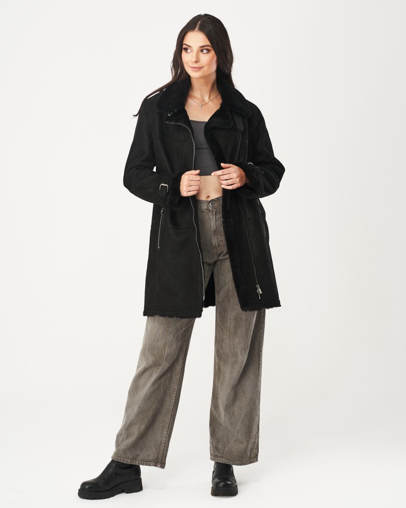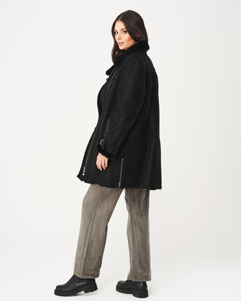 Kożuch damski Lidia uszyty został z najwyższej gatunkowo naturalnej skóry owczej, która charakteryzuje się niezwykłą delikatnością, elastycznością, a przy tym także dużą wytrzymałością, dzięki czemu model będzie Ci służyć przez wiele sezonów. Rękawy oraz kołnierz wykończone zostały uroczym, przyjemnym w dotyku futerkiem. To jednak nie wszystkie ich cechy. Kołnierz możesz zapiąć pod szyją, tworząc chroniącą przed chłodem stójkę. Natomiast rękawy posiadają pasek z klamrą służący do regulacji ich obwodu. Całość uzupełniają dwie praktyczne kieszenie boczne zapinane na solidny zamek ze stali nierdzewnej.