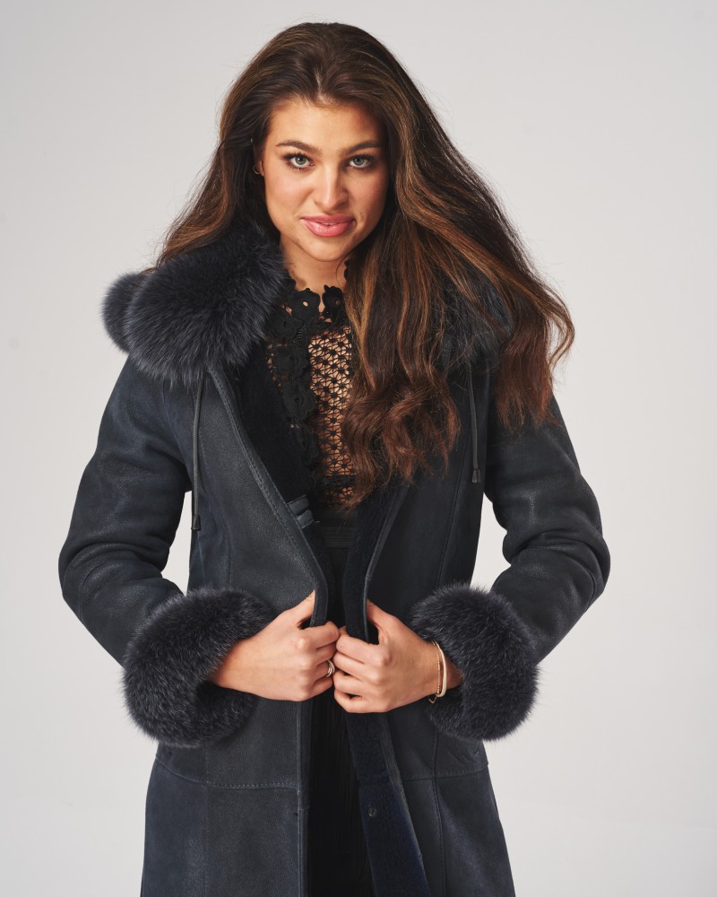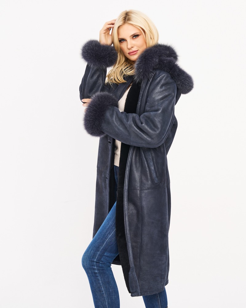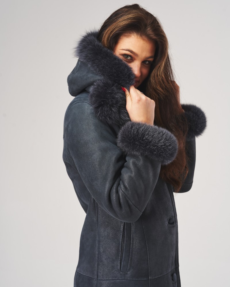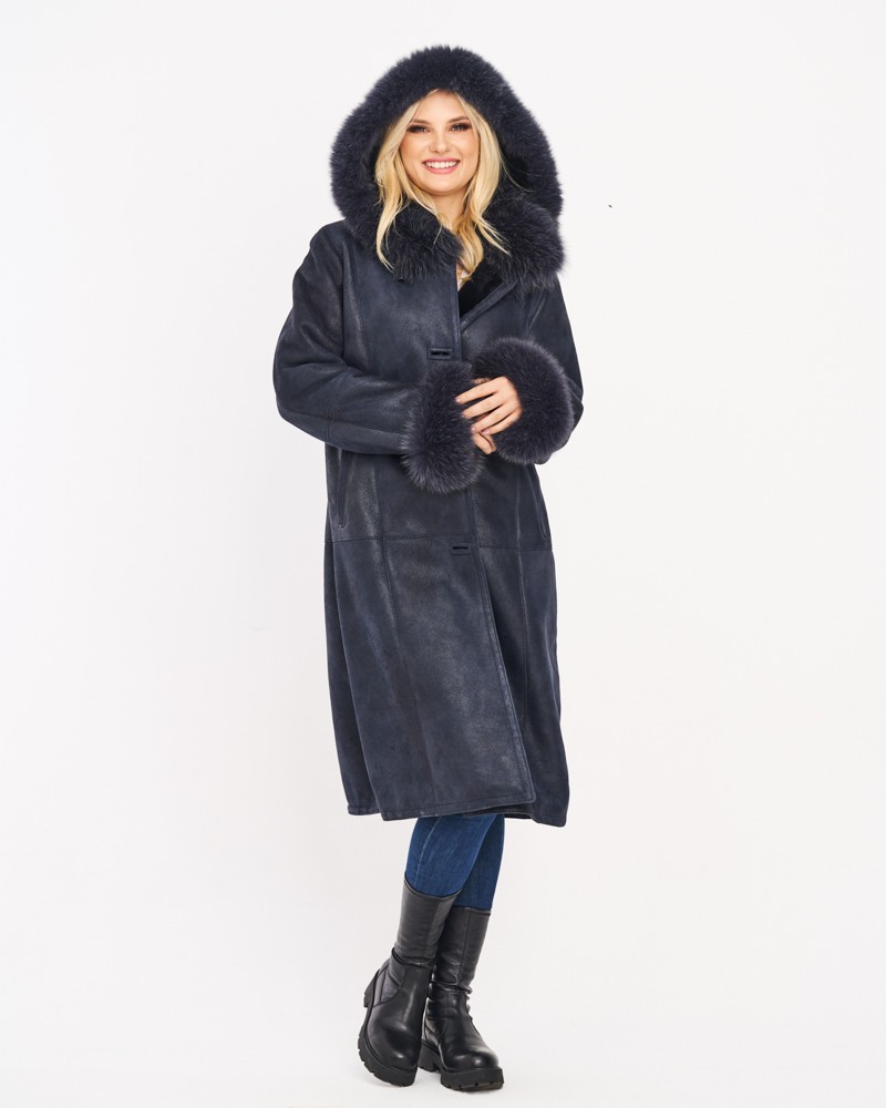 Dwie ledwo widoczne, boczne kieszenie wszyte na ukos pozwolą ogrzać zmarznięte dłonie w chłodne dni. Kożuch damski Magda posiada wykładany kołnierz z lisa, który ciepło otula szyję. Lisem też obszyto mankiety długich rękawów i ozdobiono nim również odpinany kaptur, który dodatkowo został wyposażony w wygodne stopery przeznaczone do indywidualnej regulacji.