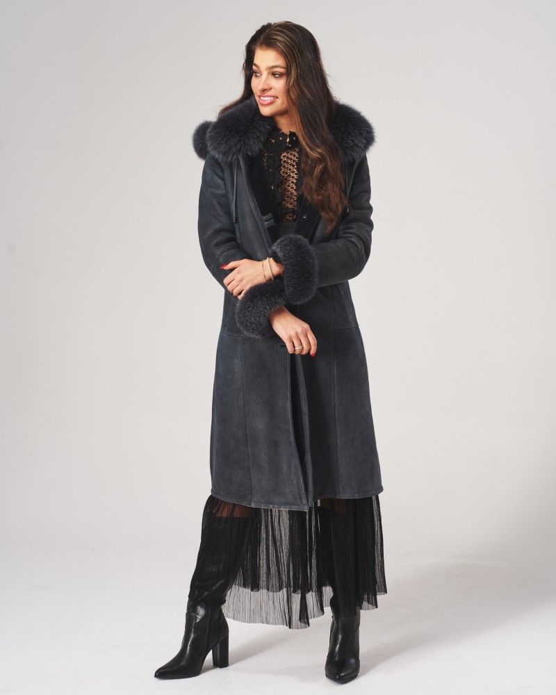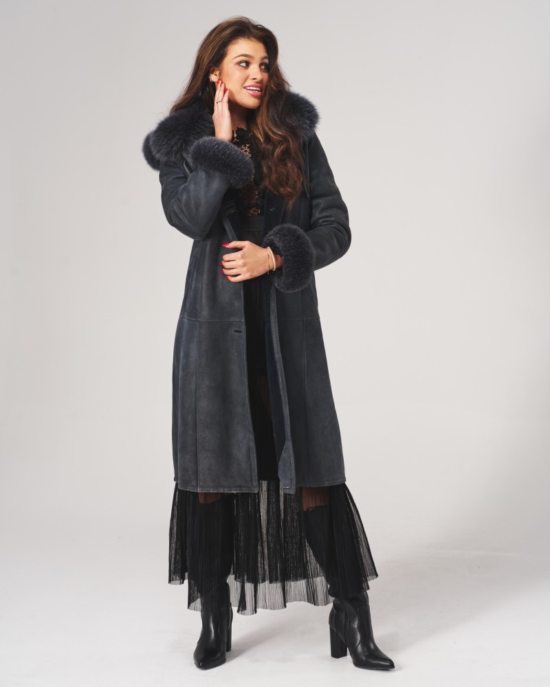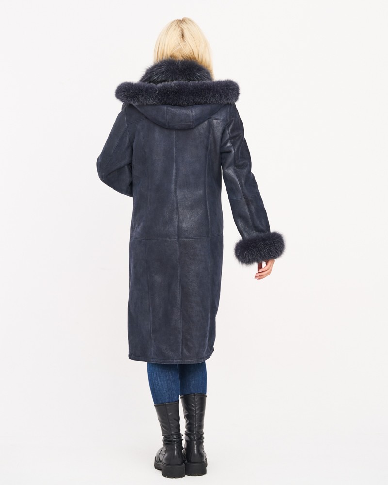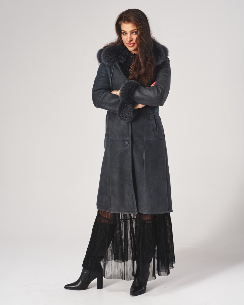 Dwie ledwo widoczne, boczne kieszenie wszyte na ukos pozwolą ogrzać zmarznięte dłonie w chłodne dni. Kożuch damski Magda posiada wykładany kołnierz z lisa, który ciepło otula szyję. Lisem też obszyto mankiety długich rękawów i ozdobiono nim również odpinany kaptur, który dodatkowo został wyposażony w wygodne stopery przeznaczone do indywidualnej regulacji.