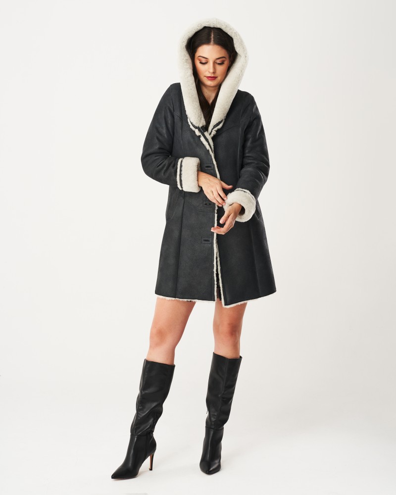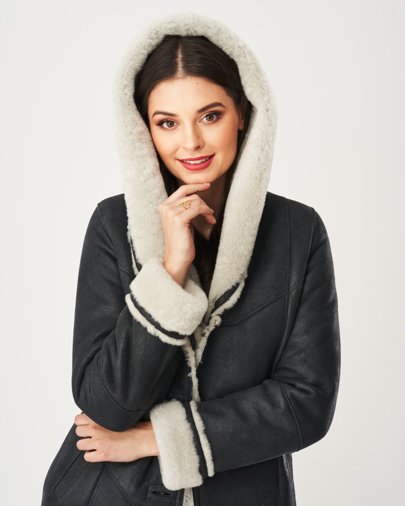 Kożuch damski Megan to projekt starannie dopracowany w najdrobniejszym calu. Uszyty został ze 100% naturalnej owczej skóry, która posiada prozdrowotne właściwości. Pomaga przy leczeniu wielu chorób i schorzeń, neutralizuje niekorzystne dla organizmu bakterie, uśmierza ból oraz zapewnia przyjemne ciepło nawet w najchłodniejsze dni. Miękkie, futrzane akcenty odcinające się kolorystycznie od całości obecne przy rękawach i kapturze dodają modelowi uroku, przyciągając spojrzenia i intrygując.
