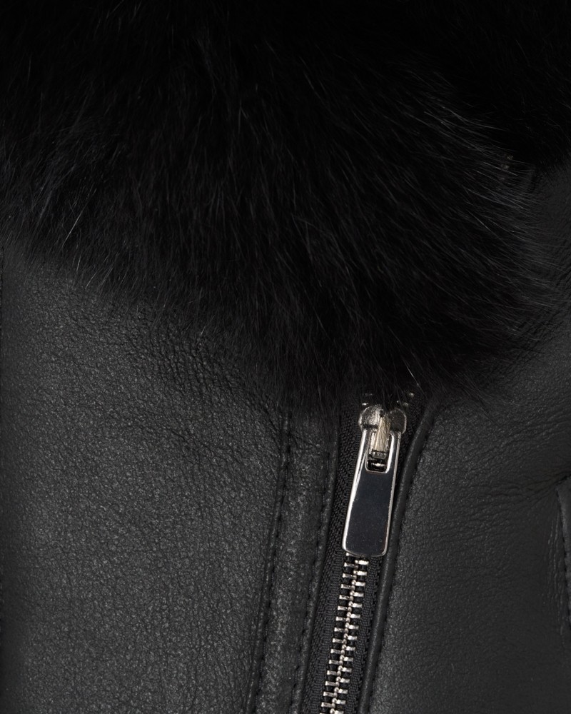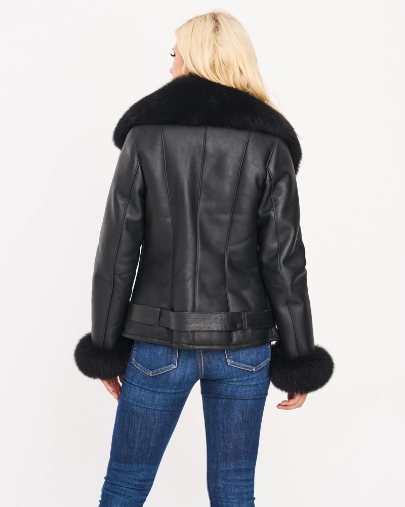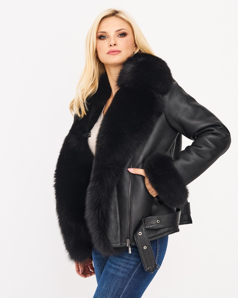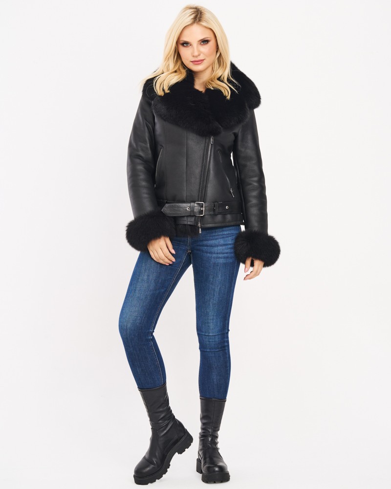 Naturalny damski kożuch Naomi czarny charakteryzuje się niezwykle eleganckim i kobiecym designem. Zewnętrzną warstwę projektu stanowi gładka, matowa skóra owcza, która w zachwycający sposób została wzbogacona przy kołnierzu i mankietach rękawów naturalnym futerkiem lisa. Miękka wewnętrzna warstwa kożucha to natomiast gwarancja niepowtarzalnego komfortu termicznego, doskonałej termoizolacyjności oraz ochrony przed mrozem i wiatrem.