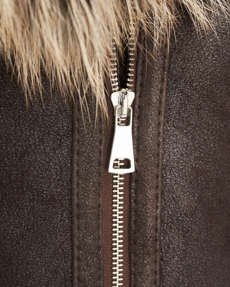 Kożuch damski Nestia posiada stonowany, niezwykle klasowy design oraz ponadczasową kolorystykę, w związku z czym idealnie dopasuje się do większości zimowych stylizacji. Fason dłuższego płaszczyka doskonale chroni przed zimnem także dolne partie ciała, a przy okazji optycznie wysmukla sylwetkę, przepięknie ją modelując. Zapięcie na płynnie pracujący, wytrzymały zamek wykonany ze stali nierdzewnej nie pozwoli, by chłód wdarł się do środka, zapewniając idealny komfort termiczny. Gdy zrobi się naprawdę zimno, praktyczne kieszenie boczne zachęcają do schowania w nie dłoni.