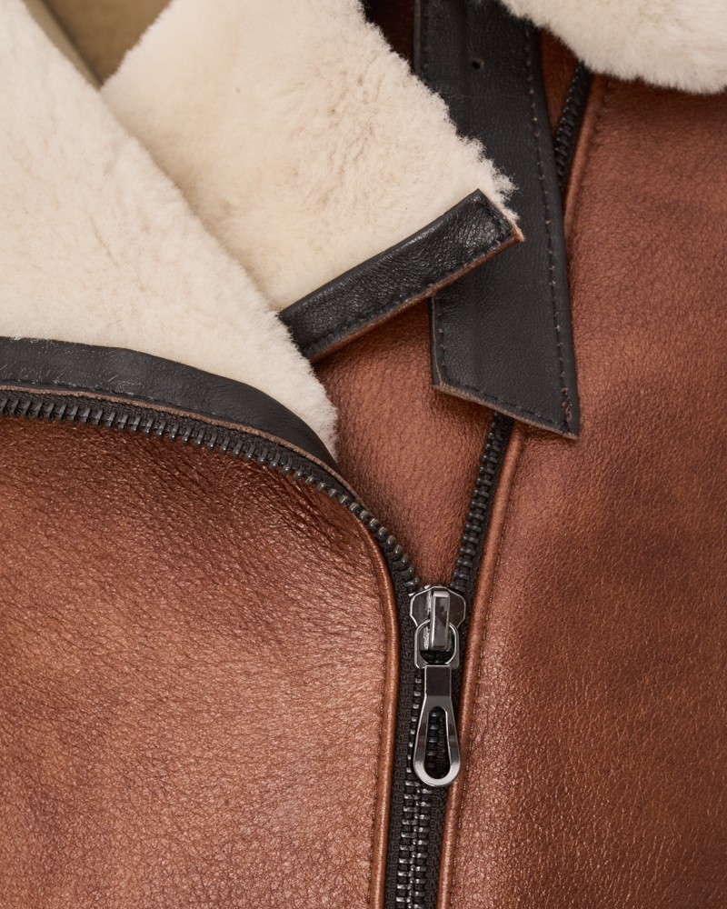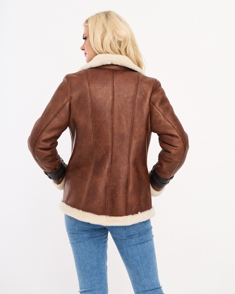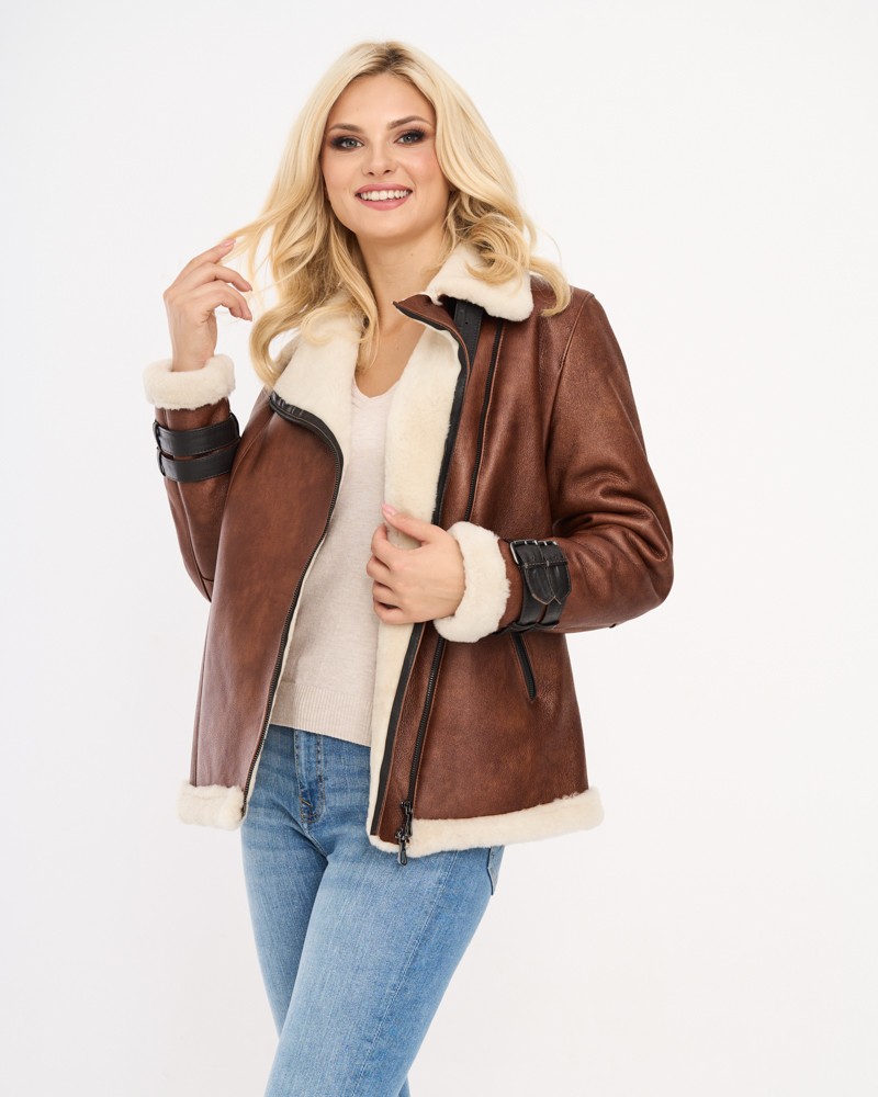 Naturalny kożuch damski Rose posiada przy mankietach rękawów eleganckie, ozdobne pasy z klamrami delikatnie odcinające się kolorystycznie od całości projektu. Model zapinany jest na wytrzymały, płynnie pracujący zamek ze stali nierdzewnej wszyty lekko po skosie, podobnie jak praktyczne i funkcjonalne kieszenie boczne. Kożuch, dzięki uszyciu go ze 100% naturalnej skóry owczej, posłuży przez lata, zapewniając ochronę przed chłodem i rozgrzewając w najzimniejsze dni.