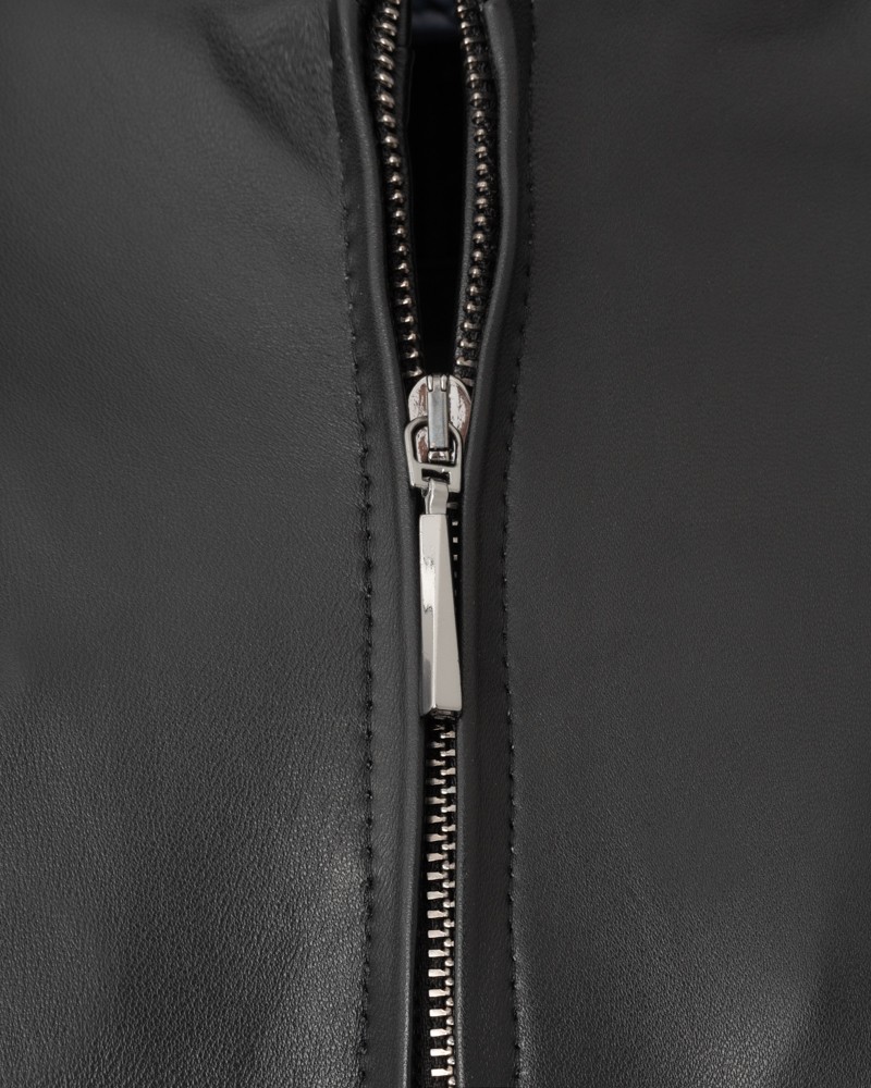 Damska kurtka skórzana Amber posiada klasyczny, lekko dopasowany krój i ulubioną przez Panie długość, zakrywającą biodra i pośladki. Model ten optycznie wyszczupla sylwetkę i doskonale maskuje ewentualne niedoskonałości figury. Na całej długości zapinana na zamek błyskawiczny posiada wysoką stójkę, rozkładaną na kołnierz. Długie, wygodne i nie krępujące ruchów rękawy, zwężają się ku dołowi. Oryginalne przeszycia nadają kurtce charakteru. Dwie boczne kieszenie, zapinane na zamek błyskawiczny zdobią przód.