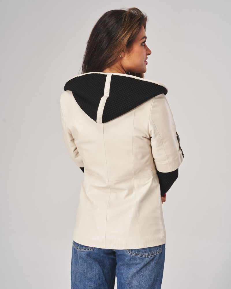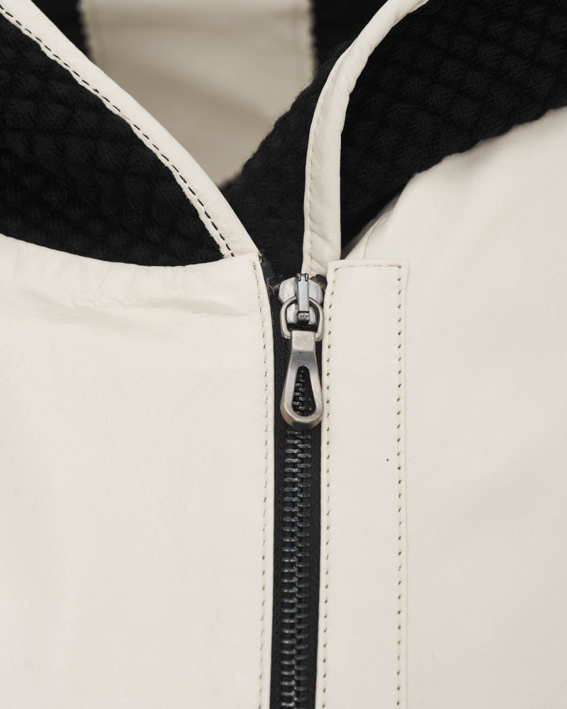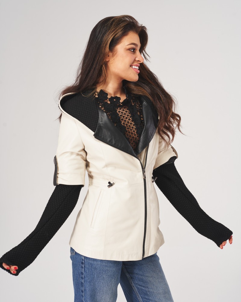 Kurtka skórzana damska Bella wyróżnia się unikatowym połączeniem miękkości naturalnej skóry jagnięcej z nietuzinkowymi wstawkami materiałowymi, co tworzy niepowtarzalny efekt wizualny. Możliwość odpięcia rękawów pozwala na elastyczne dopasowanie modelu do zmieniających się warunków pogodowych, co jest niewątpliwą zaletą kurtki. Praktyczny kaptur oraz solidne zapięcie na zamek błyskawiczny, wykonany ze stali nierdzewnej i wszyty nieco po skosie, gwarantują dodatkową ochronę przed trudnymi warunkami atmosferycznymi.