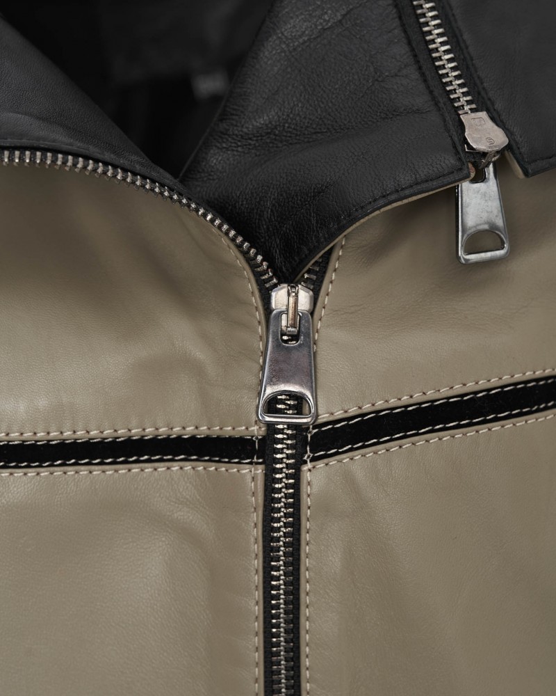 Kurtka skórzana damska Hinda, wykonana z miękkiej, naturalnej skóry jagnięcej licowej, uzupełniona jest o atrakcyjne wstawki z tej samej skóry w kontrastującym odcieniu, co nadaje jej wyjątkowego charakteru. Model odznacza się asymetrycznym zamkiem błyskawicznym oraz praktycznymi kieszeniami, zapewniającymi mu niebanalny, lekko nonszalancki look. Delikatnie taliowany krój i długość do bioder idealnie podkreślają sylwetkę. Kurtka skórzana Hinda łączy w sobie elegancję z ponadczasowością, oferując kobietom stylowy i funkcjonalny wybór na każdą okazję i porę roku.