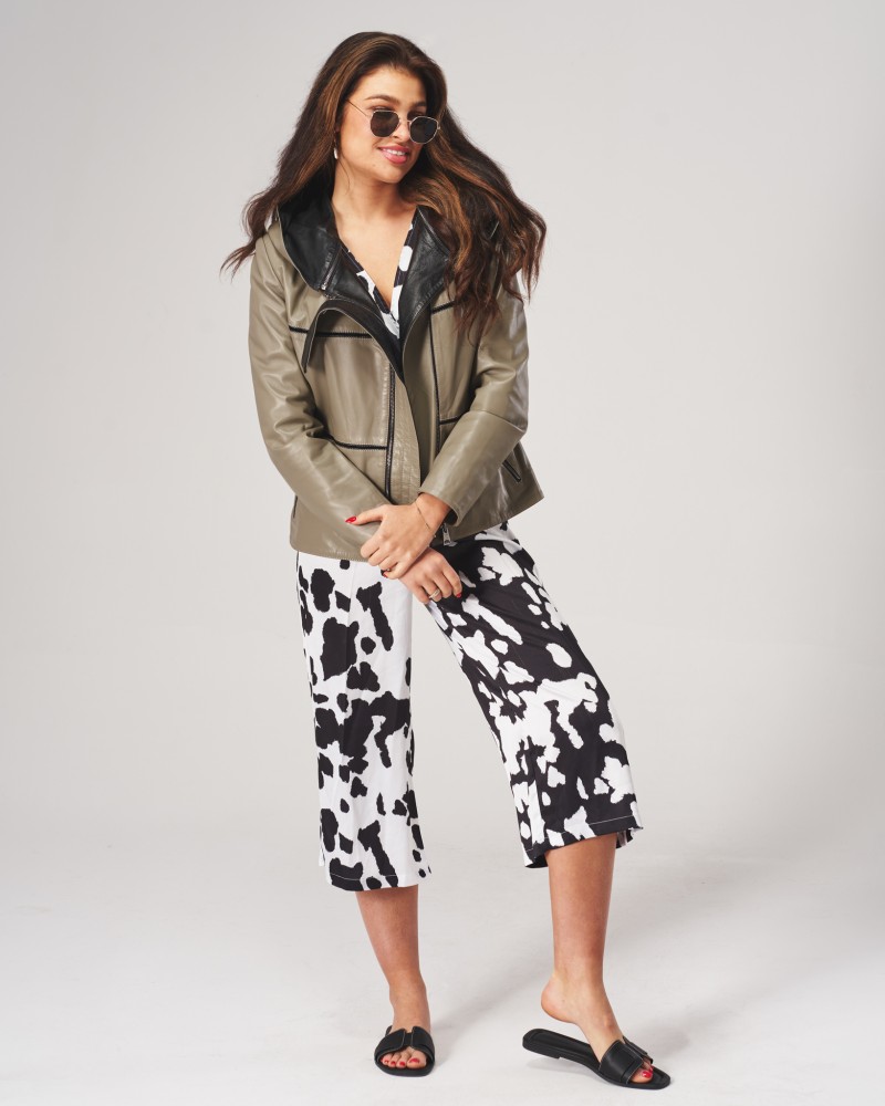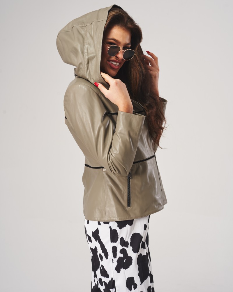 Kurtka skórzana damska Hinda została zaprojektowana z myślą o zróżnicowanych preferencjach modowych każdej z Pań, pozwalając na noszenie jej w tradycyjnej formie z kapturem i stójką lub w formie bardziej eleganckiej chanelki. Tą niepowtarzalną transformację uzyskać możesz w prosty sposób, po prostu odpinając kaptur i stójkę. Ów designerskie rozwiązanie podkreśla uniwersalność i praktyczność kurtki, która doskonale wpasowuje się w rozmaite okoliczności i pory roku. Dzięki temu model wyróżnia się na tle innych i staje się wszechstronnym dodatkiem do każdej damskiej garderoby.