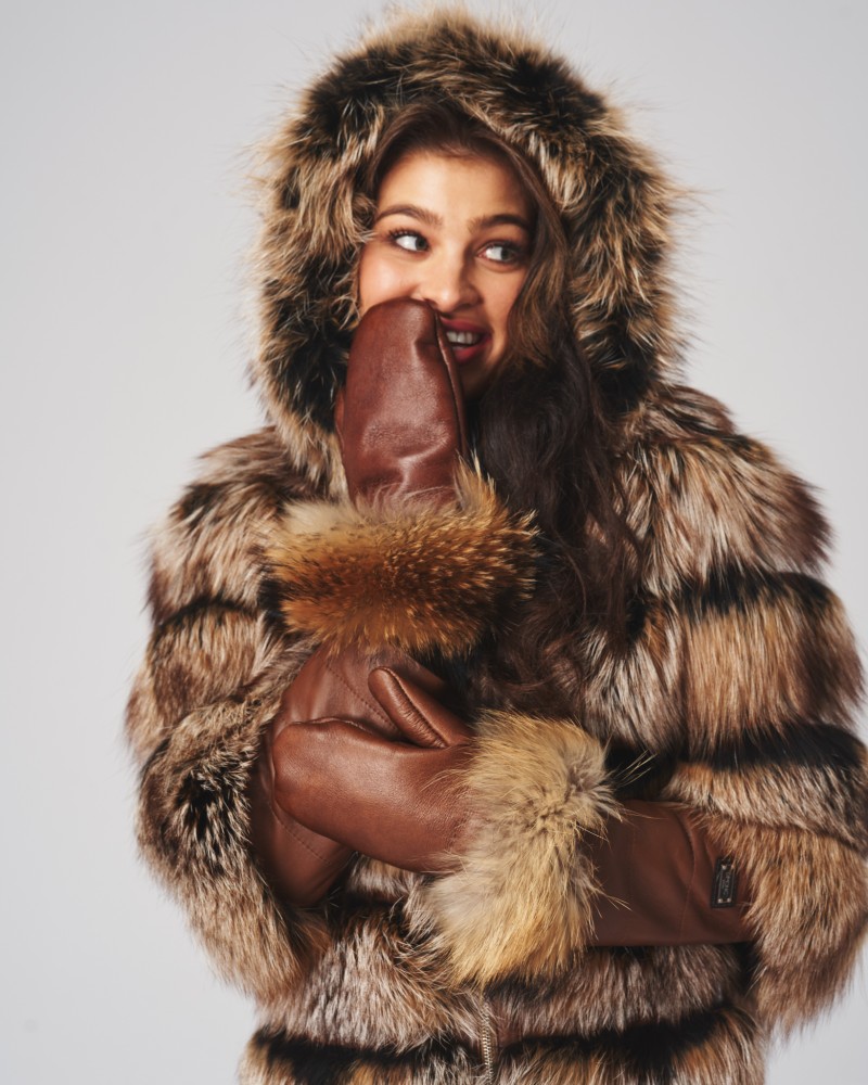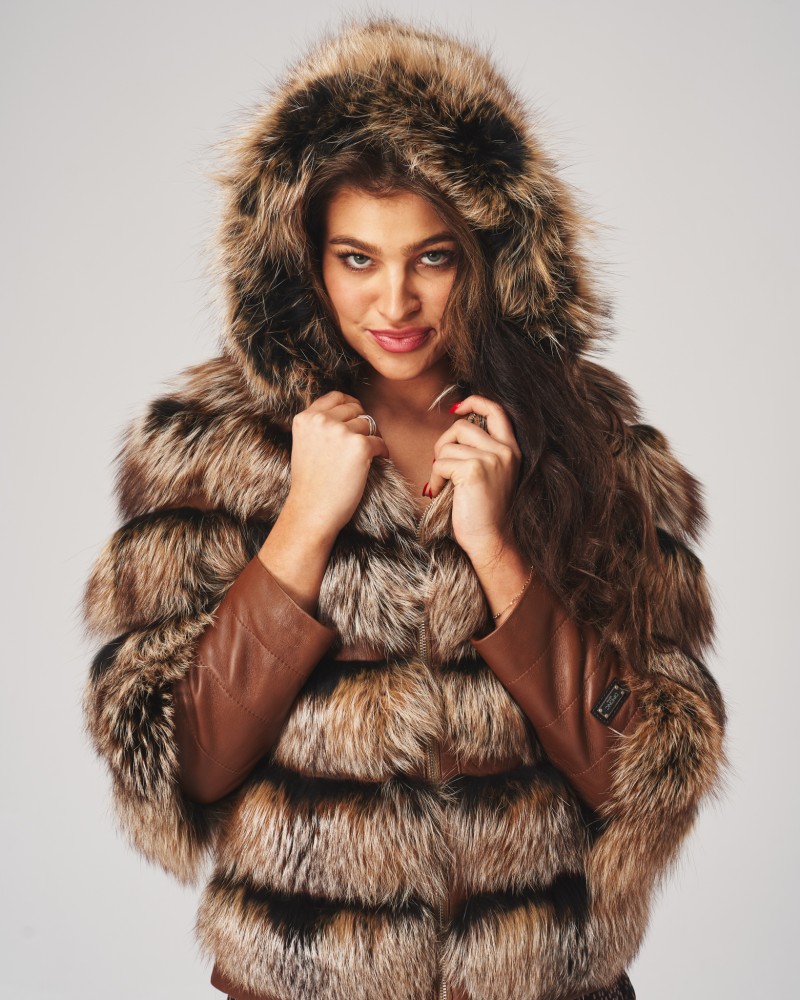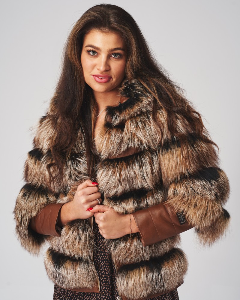 Kurtka skórzana damska Omena to nie tylko skóra jagnięca i futro z jenota, to także niepowtarzalne dodatki skóry licowej, najlepiej dostrzegalne na wysokości rękawów. Tworzą one wyjątkowy charakter modelu, dodając mu jeszcze więcej elegancji i klasy. Kurtka wyposażona została w praktyczny kaptur, idealnie chroniący przed chłodem i wiatrem. Zapięcie na solidny, wykonany z wytrzymałej stali nierdzewnej zamek błyskawiczny idealnie dopełnia całość pojektu.