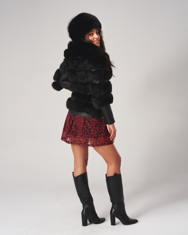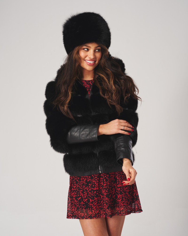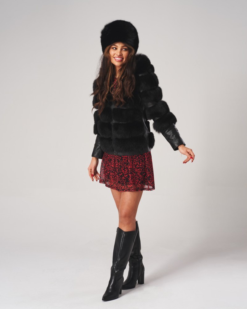Kurtka skórzana damska Omena wyróżnia się nie tylko wykorzystaniem do produkcji skóry jagnięcej i futra z jenota, ale również unikatowymi detalami z licowej skóry, szczególnie widocznymi na rękawach, które dodają jej elegancji i klasy. Co więcej, praktyczny kaptur i mocne zapięcie na zamek błyskawiczny z wytrzymałej stali nierdzewnej zapewniają ochronę przed zimowymi warunkami, tworząc doskonałe połączenie funkcjonalności z wysoką estetyką.