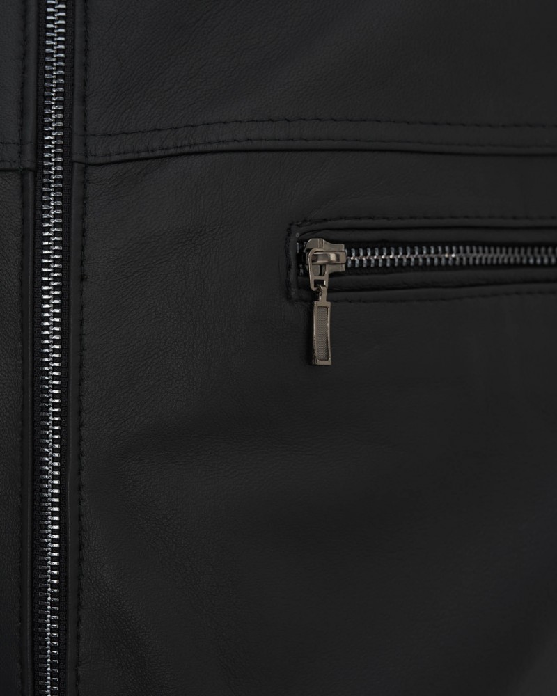 Kurtka skórzana męska Justin, uszyta w długości do bioder, posiada klasyczny krój. Przy szyi wykończono ją wygodną stójką, a całość zapinana jest na trwały zamek błyskawiczny ze stali nierdzewnej. Model wzbogacono o dodatkowe ocieplenie, dzięki czemu doskonale zabezpieczy Cię przed chłodem podczas przejściowych pór roku, zapewniając optymalny komfort termiczny. Okrycie wyposażono w trzy zapinane na suwak kieszenie – dwie po bokach i jedną na wysokości klatki piersiowej. Kurtka skórzana Kris jest gładka z przodu i z tyłu, jedynie przy ramionach ozdobiono ją dwoma ukośnymi przeszyciami. Wewnętrzna kieszeń pozwala na bezpieczne przechowywanie niezbędnych drobiazgów.