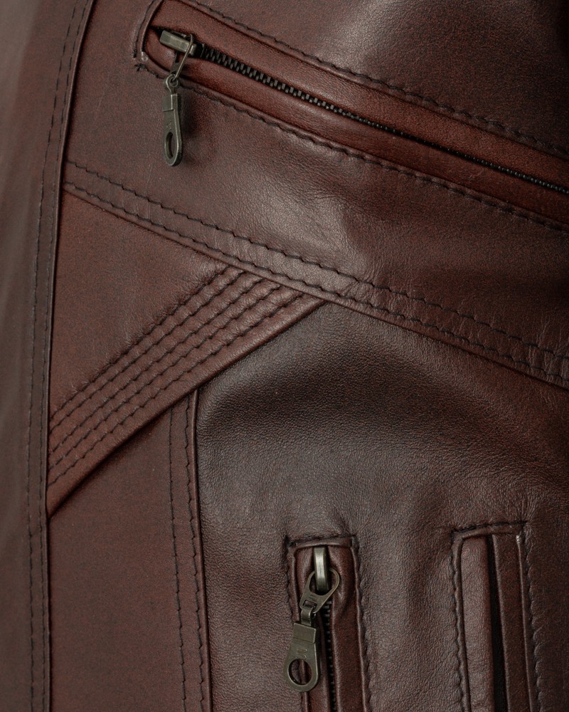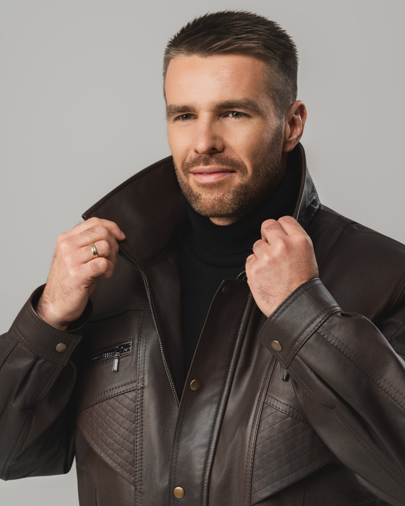 Kurtka skórzana męska Lukas posiada w sobie mnóstwo tajemnic, o których szybko przekona się jej posiadacz. Prosty krój długości do bioder idealnie układa się na męskiej sylwetce, a wykończenie modelu gumowym ściągaczem wpłynęło dodatnio na komfort użytkowania i wygodę. Lukas uszyty został z wysokogatunkowej, trwałej i wytrzymałej naturalnej skóry bydlęcej, tworzącej jego niepowtarzalny, twardy, męski charakter. Zapięcie na odporny na uszkodzenia, metalowy zamek przykryte jest pod praktyczną listwą kryjącą, dzięki czemu design kurtki zyskuje na minimalizmie.