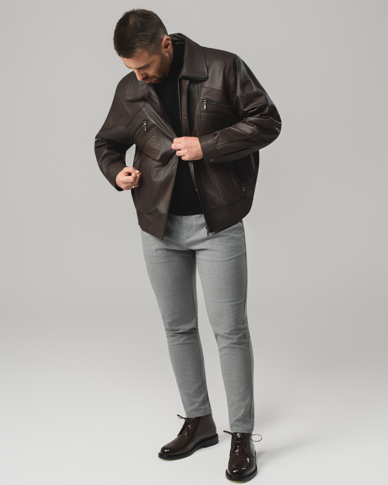 - Ochrona przed niekorzystnymi warunkami atmosferycznymi – Skóra bydlęca charakteryzuje się także świetnymi właściwościami izolacyjnymi, co sprawia, że jest idealnym wyborem na zimową odzież. Męskie zimowe kurtki skórzane szyte z tego materiału zapewniają doskonałą ochronę przed zimnem, wiatrem, a nawet lekkim deszczem. Naturalna skóra bydlęca jest w stanie utrzymać ciepło ciała, jednocześnie umożliwiając skórze oddychanie, co zwiększa komfort noszenia nawet podczas dłuższego przebywania na zewnątrz w chłodne dni.
