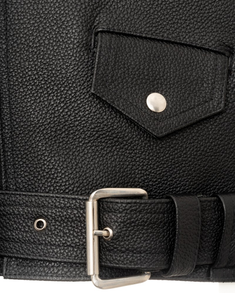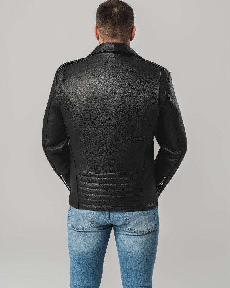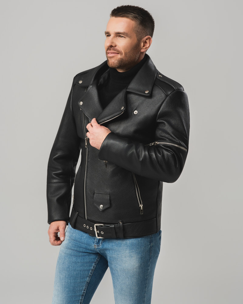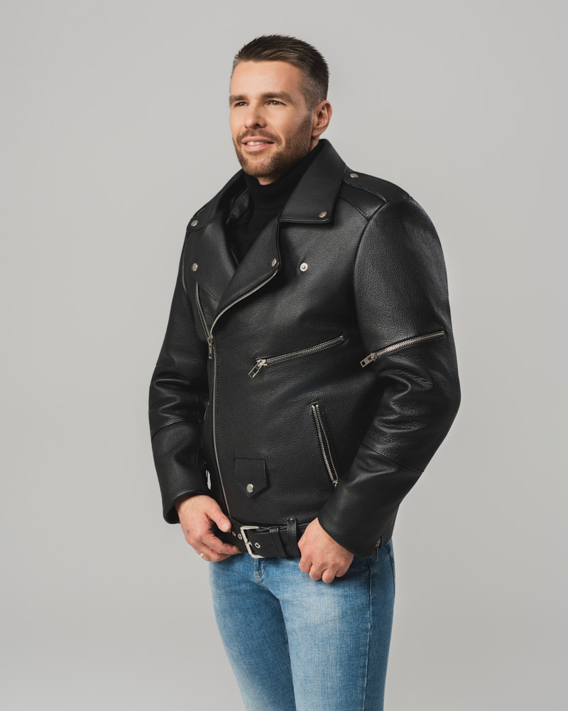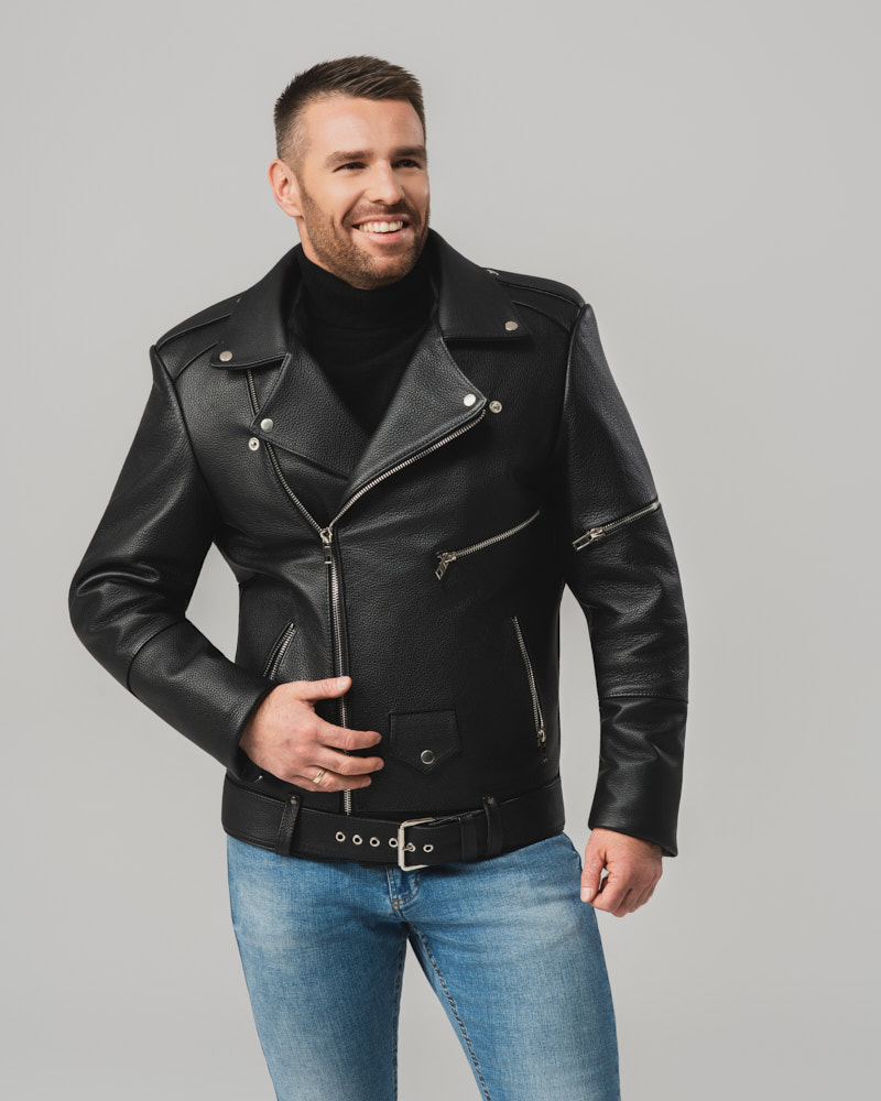 Ramoneska męska Billy posiada proste, niekrępujące ruchów rękawy, które wyposażono przy nadgarstkach w zamki błyskawiczne. Tył jest jednolity, gładki z jednym poziomym przeszyciem. Z przodu kurtki, na samym dole, pasek zapinany na klamrę, pozwala na indywidualną regulację szerokości. Model spełni oczekiwania najbardziej wymagających. Doskonała jakość surowca, nietuzinkowy design i precyzja wykonania, gwarantują długoletnie użytkowanie i zadowolenie wszystkich Panów, którzy zdecydują się na zakup.