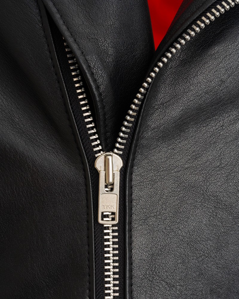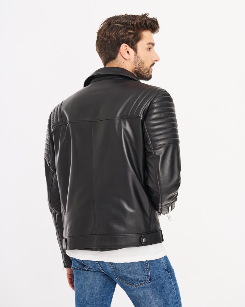 Ramoneska męska Harwi to projekt dla twardych, pewnych siebie mężczyzn, którzy pragną podkreślić swoją wyjątkowość poprzez styl ubierania się. Model wykonaliśmy z odpornej na uszkodzenia i niezwykle przyjemnej w dotyku naturalnej skóry jagnięcej, gwarantującej jego trwałość i wytrzymałość. Po środku znajduje się wszyty nieco asymetrycznie metalowy zamek, tworzący niepowtarzalny efekt wizualny. Wykładany kołnierz znakomicie się prezentuje, doskonale współgrając z obecnymi na rękawach przepikowaniami, optycznie poszerzającymi ramiona.